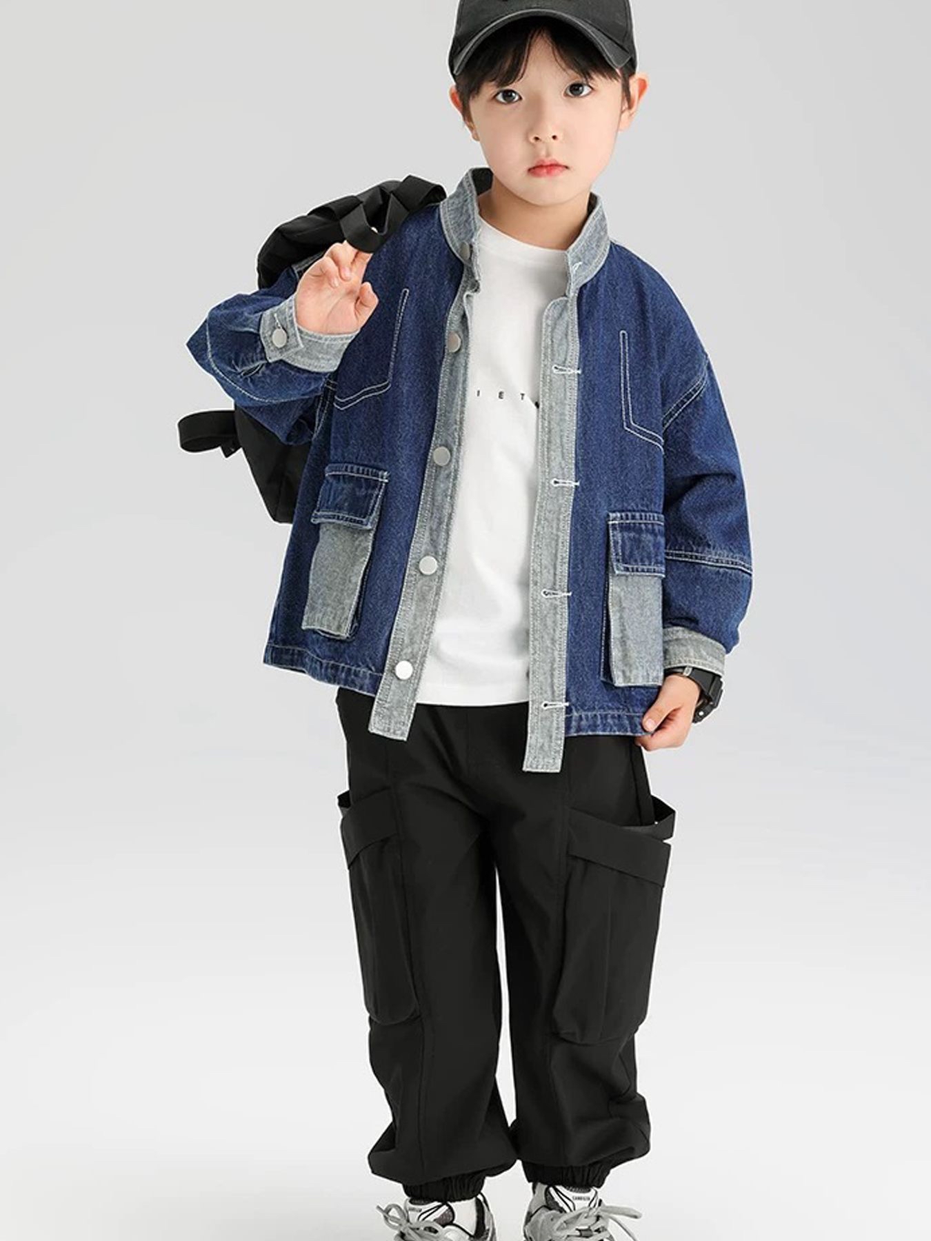 大小童併色牛仔恤